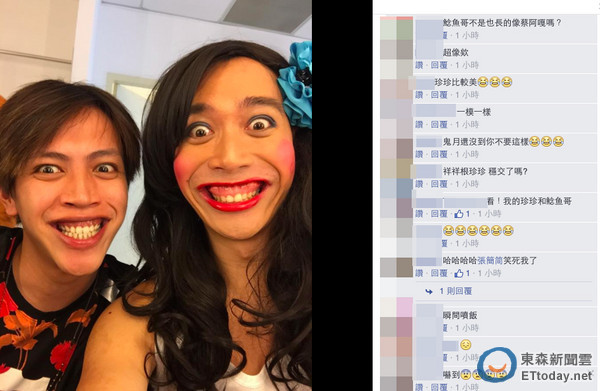 搞笑藝人無尊(本名謝駿毅)因模仿電影《功夫》的「齙牙珍」一角,知名度暴漲,走在路上都有人叫他「珍珍」,人氣不容小覷。而他的「招牌笑容」意外與許多人撞臉,不僅神似女星莫文蔚,最近又找到「失散多年的哥哥」?在臉書PO照後,引起粉絲討論,不少人激動回應:「真的太像了!簡直是雙胞胎。」